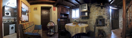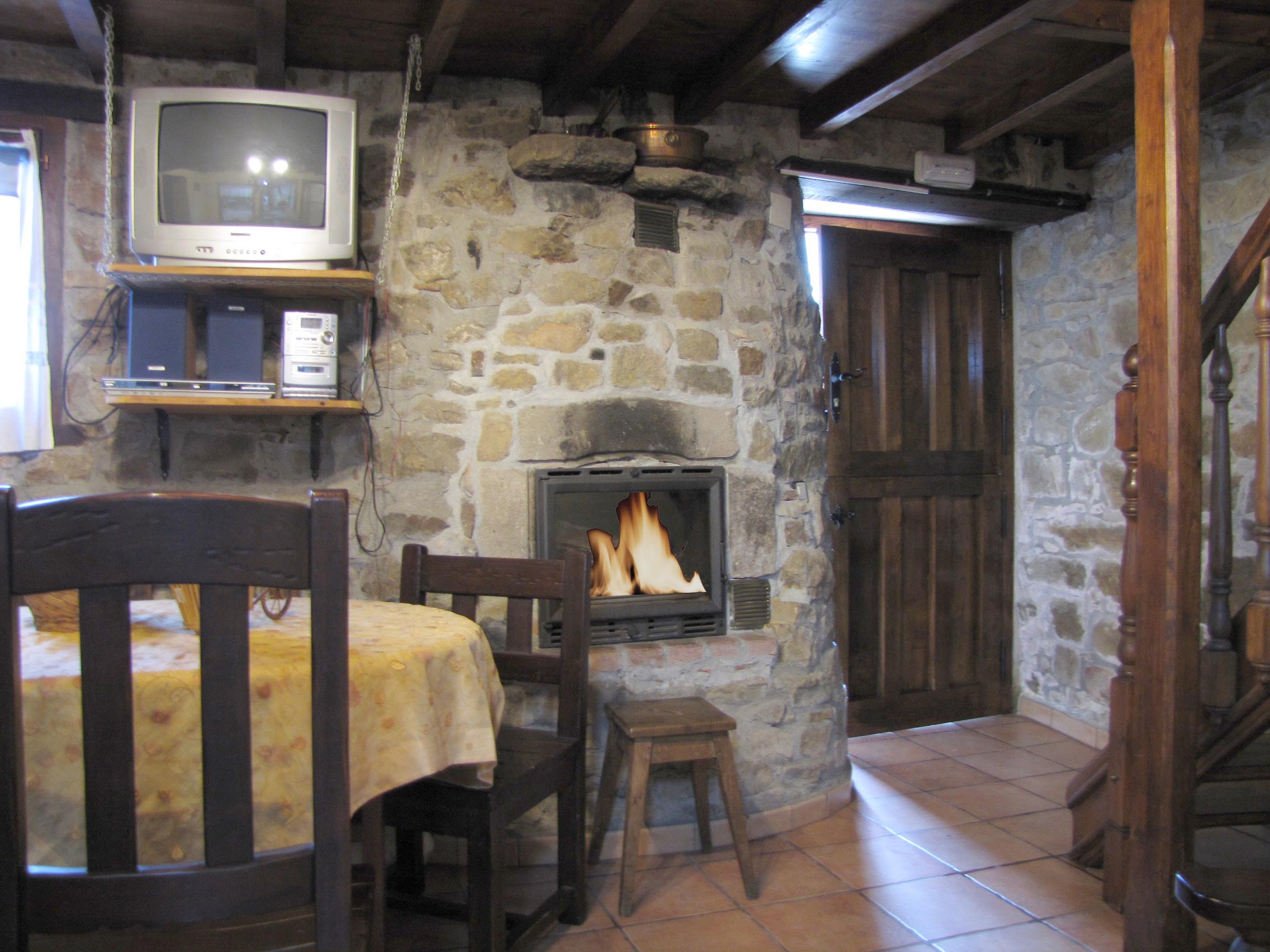 Salón con chimenea, cocina totalmente equipada y aseo con ducha.